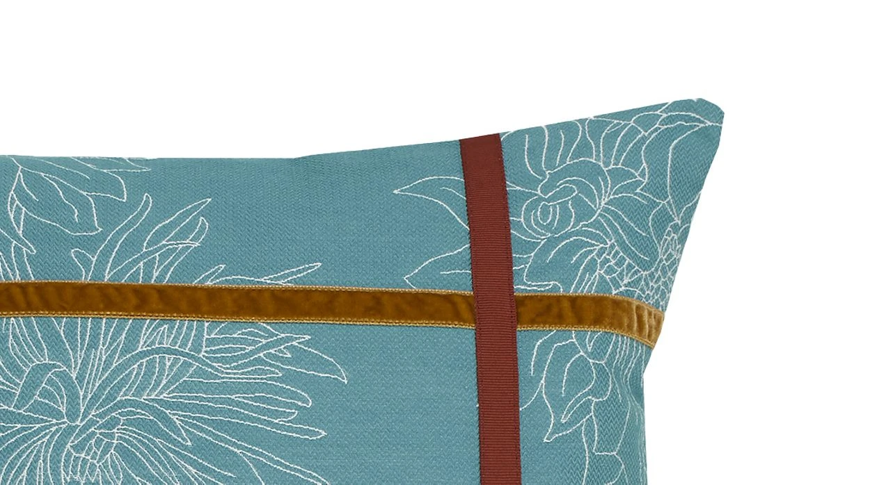What could be closer to a fashion accessory than a collection of cushions to customize a sofa? Kenzo Takada has interpreted the dahlia theme in all its forms: cushions with large flowers and buds, small herringbones and buds that have just opened, combined with fickle stripes, palms and faux-plains, all in three harmonies: Umi, Natsu and Irune.