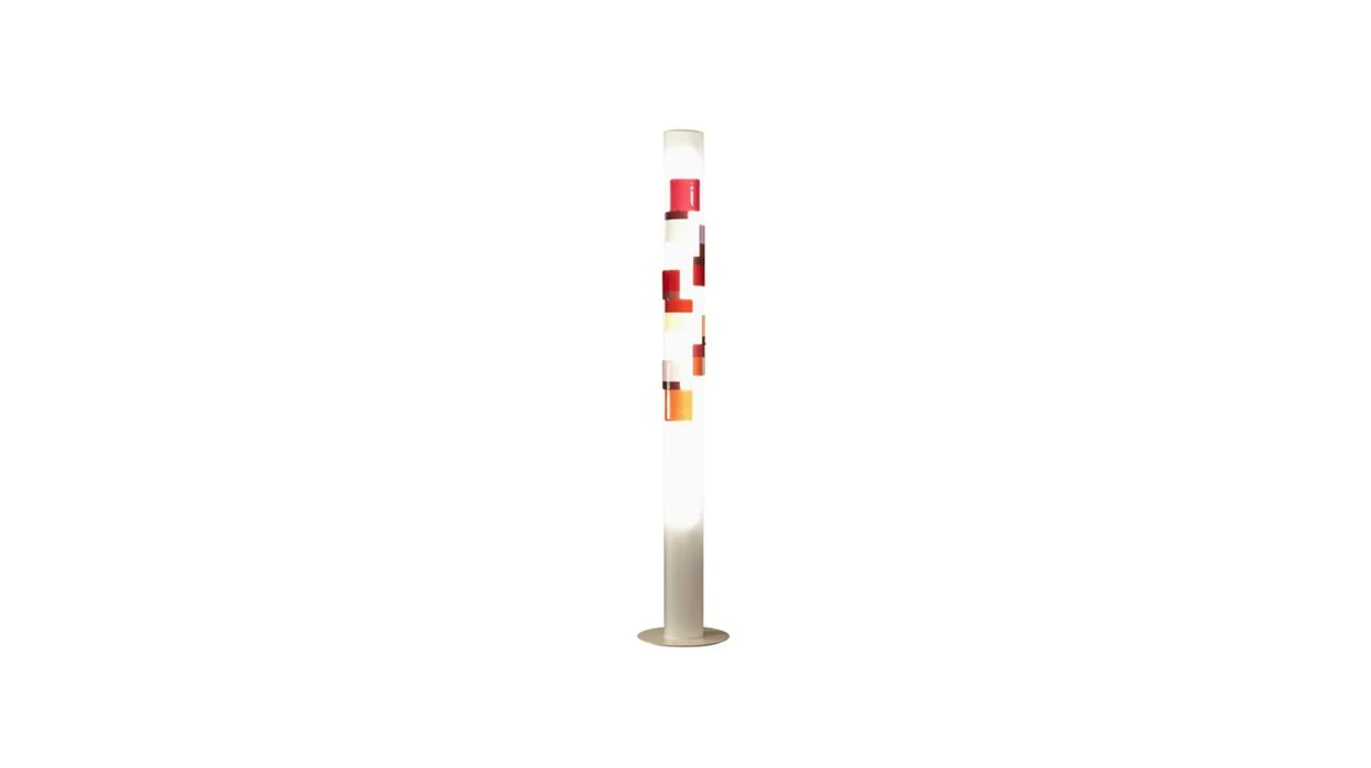 Thermoformed glass on satin methacrylate tube – base in steel with matte white lacquer.