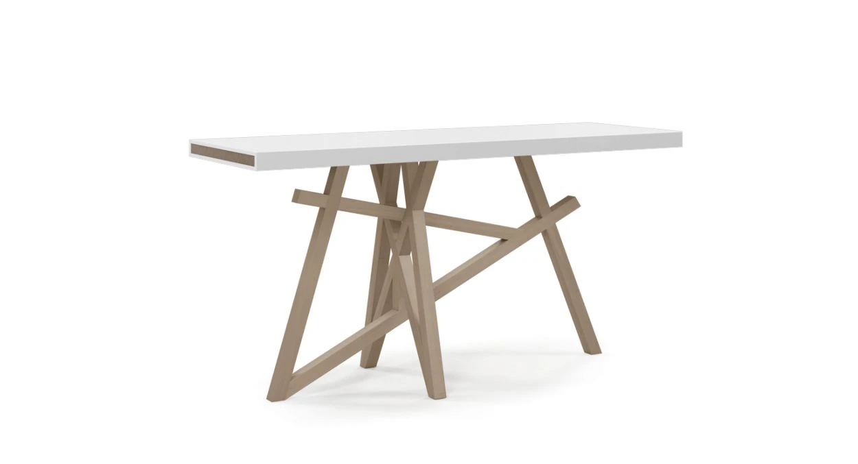 Console with top in High Resilience matte lacquer finish (many colors available). Base in solid maple wood (4 stains available). Side panels made with a piece of oak.