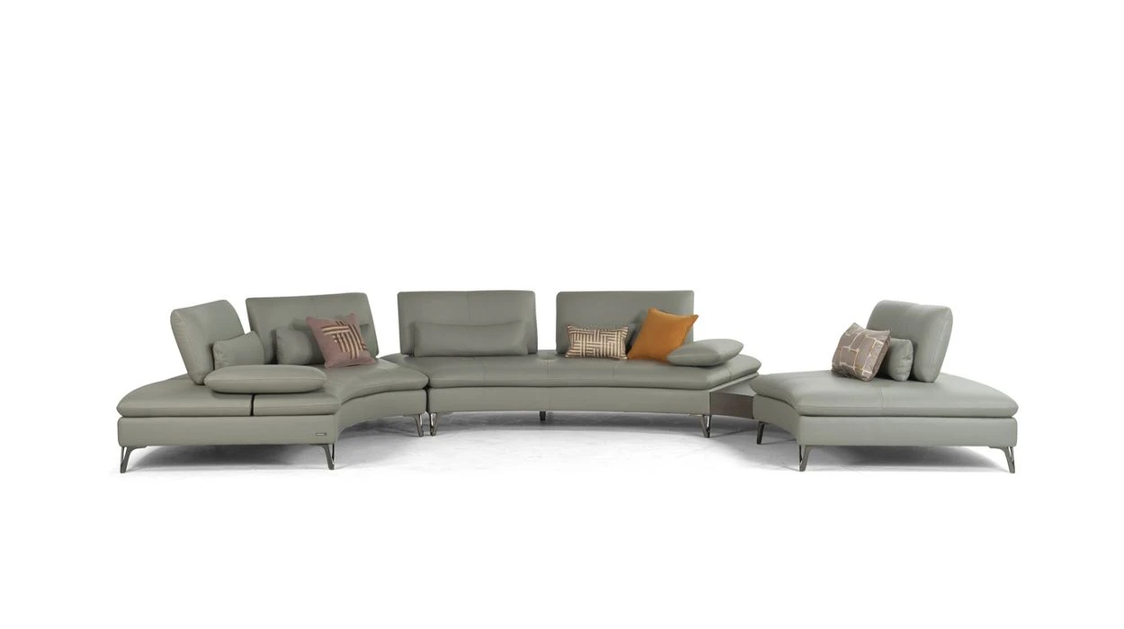 Upholstered in Sweet leather, full grain, pigmented finish. Backs with double depth, with adjustable mechanism, armrests open to the side. Padded seat cushions in bi-density foam and fibers. Back cushions in HR foam and fibers. Armrest cushions and lumbar cushions in HR foam and padding. Structure in solid fir wood, pine plywood and particle board. HR elastic straps suspension. Base in cast aluminum, black nickel finish. Optional deco cushions.