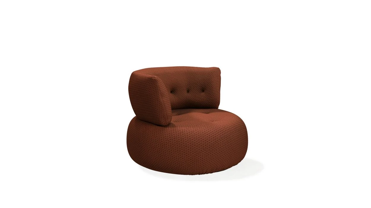 Upholstered in leather or fabric. Seat in foam 35M kg/m³. Back in foam 21SM kg/m³. Structure in solid fir wood and poplar plywood (CARB wood). Elastic straps cross webbing suspension. Metal base with matte black finish. Optional deco cushions.