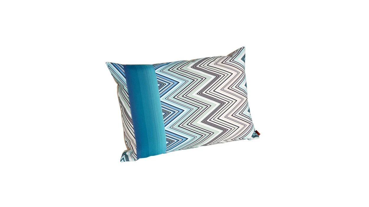 Rectangular cushion, patchwork of 2 fabrics (Tonga 170 and Kew outdoor 170), interior in outdoor polyester fibre, removable covers.