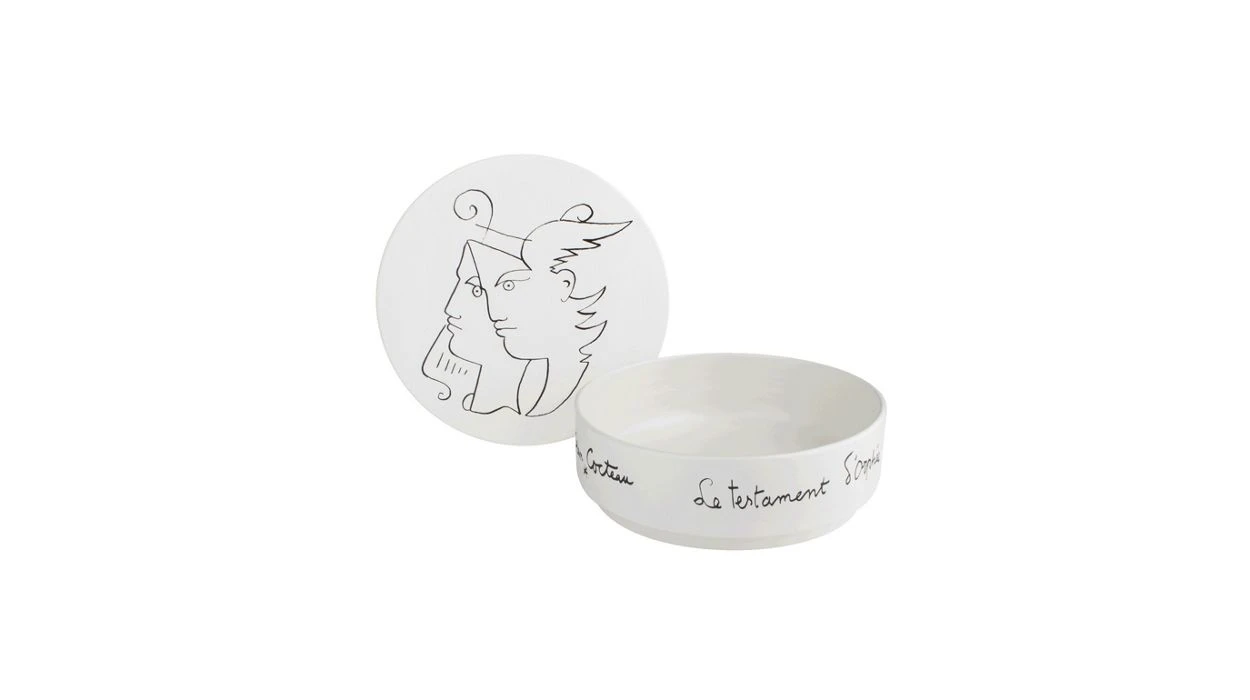 Red earthenware box, turned and enameled by hand. Decoration incised in enamel.