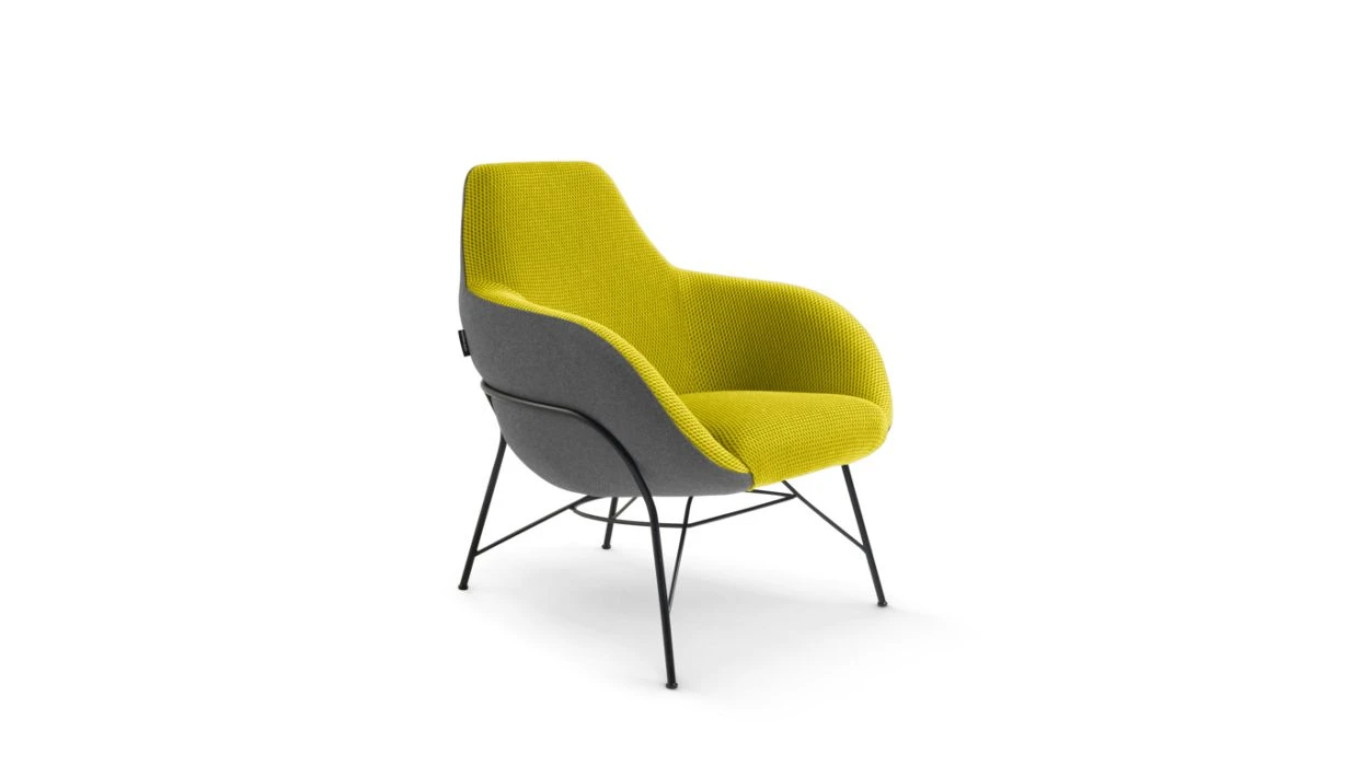 Seat cushion in HR foam 50kg/m3 and fibres. Back cushion in HR foam 45kg/m3 and fibres.