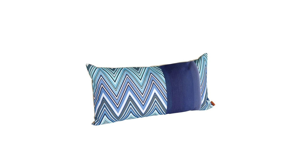 Square cushion, patchwork of 2 fabrics (Tonga 170 and Kew outdoor 170), interior in outdoor polyester fibre, removable covers.