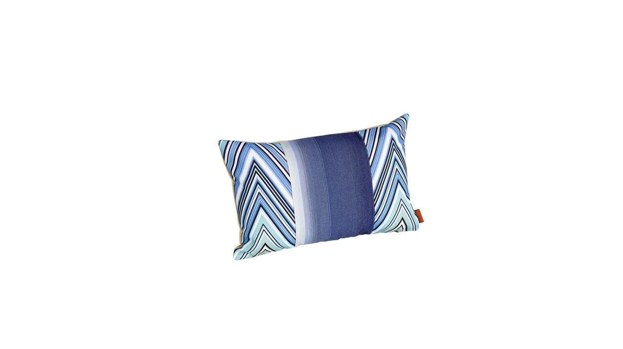 Rectangular cushion, Kew outdoor 170 fabric, centre in Tonga 170 fabric, interior in outdoor polyester fibre, removable covers.