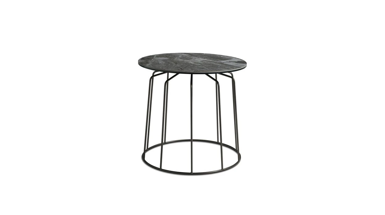 Structure in lacquered steel wire (many lacquer colours available), top in 13mm-thick glass/ceramic (Pietra or Marmi) composite.
