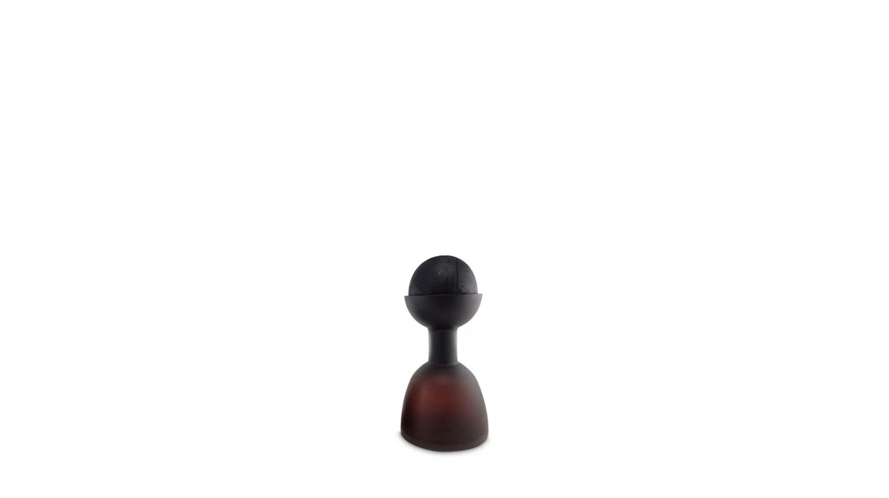 Vase en verre soufflé bouche, avec un bouchon en bois tourné finition bois brûlé. La fabrication artisanale rend chaque pièce unique. Fabrication européenne.