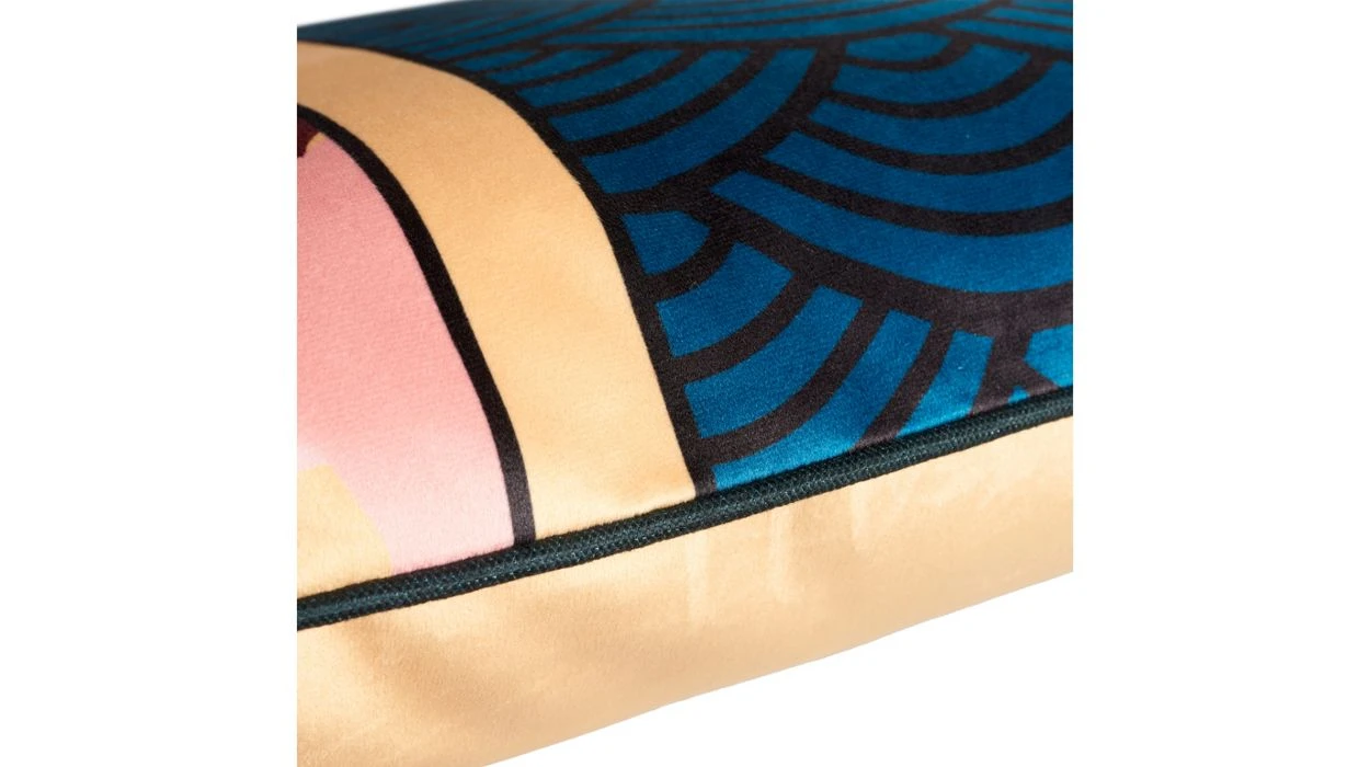 Cushion in imitation suede with piping in 100% polyester. Front: printed design. Back: plain. Matches the YUMI rug.